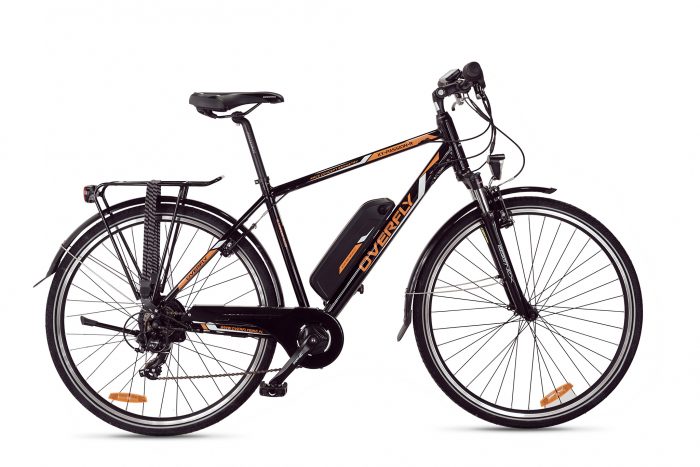 3 lata gwarancji na baterię w każdym rowerze Overfly. 28 calowe koła. Rama 20″. Rower elektryczny posiada 5 stopni wspomagania. Maksymalna prędkość wspomagania to 35 km/h. Ograniczona zgodnie z normą UE EN 15194 do 25 km/h. Posiada tryb prowadzenia „walk” do 6 km/h. Wyświetlacz LCD wskazuje takie parametry jak aktualną prędkość, poziom naładowania baterii, przejechaną odległość, łączny przejechany dystans. Bateria roweru umieszczona na ramie poprawia wyważenie roweru. Przedni amortyzowany widelec poprawia komfort jazdy. Tylny silnik Shengyi posiada wysoki moment obrotowy 45 Nm. Oświetlenie zasilane z osobnych baterii. Dwie gamy kolorystyczne: niebiesko – czarny oraz pomarańczowo – czarny. Występuje w wariancie z większą baterią 14.5 Ah.