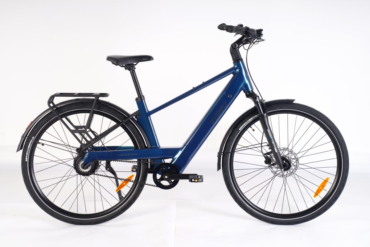 Nowość w ofercie Overfly! Napęd na pasku Gates z przekładnią automatyczną z trzema biegami. 3 lata gwarancji na baterię w każdym rowerze Overfly! Nowoczesny model miejski o nietuzinkowej ramie. Koła 28 cala. Tylny silnik Ananda z automatyczną przekładnią i napędem na pasku renomowanej firmy Gates. Rama 19,5″. Rower elektryczny posiada 5 stopni wspomagania. Maksymalna prędkość ograniczona zgodnie z normą UE EN 15194 do 25 km/h. Posiada tryb prowadzenia „walk” do 6 km/h. Kolorowy wyświetlacz LCD wskazuje takie parametry jak aktualną prędkość, poziom naładowania baterii, przejechaną odległość, łączny przejechany dystans. Pojemności baterii do 15 Ah (540 Wh). Opony o szerokości 2.0 cala oraz amortyzowany widelec gwarantują dobrą trakcję w mieście i lekkim terenie. Napęd z paskiem to żywotność i bezobsługowa jazda na lata.