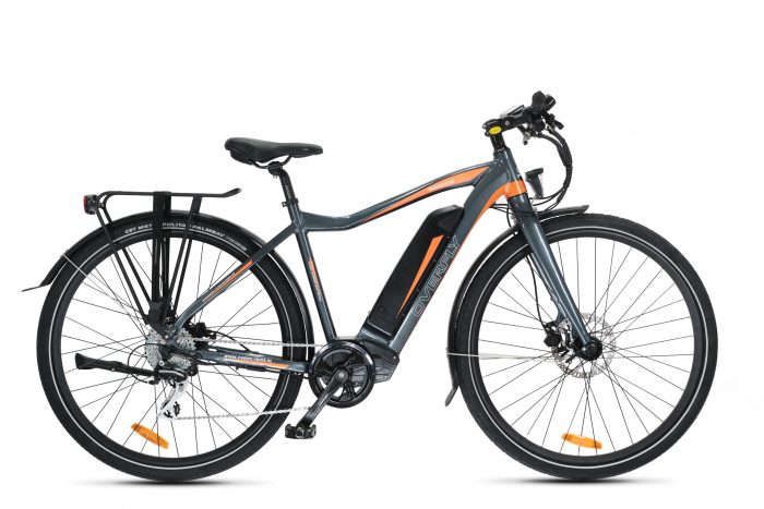 3 lata gwarancji na baterię w każdym rowerze Overfly. 28″ calowe koła. Rama 19″. Rower posiada 5 stopni wspomagania. Maksymalna prędkość wspomagania to 30 km/h. Ograniczona zgodnie z normą UE EN 15194 do 25 km/h. Posiada tryb prowadzenia „walk” do 6 km/h. Wyświetlacz LCD wskazuje takie parametry jak aktualną prędkość, poziom naładowania baterii, przejechaną odległość, łączny przejechany dystans. Bateria umieszczona na ramie poprawia wyważenie roweru. Opony o szerokości 2.0 cala sprawiają, że jazda jest komfortowa. Tylny silnik Shengyi posiada wysoki moment obrotowy 45 Nm. Oświetlenie zasilane z osobnych baterii. Występuje w wariancie z większą baterią 17.5 Ah. Ładowarka w zestawie.